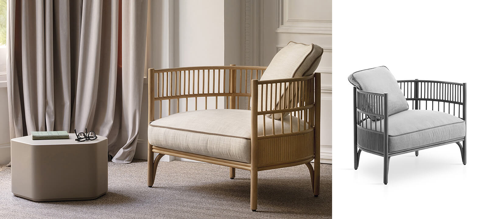 Le fauteuil CADENZA est une pièce de caractère, douce et intemporelle.