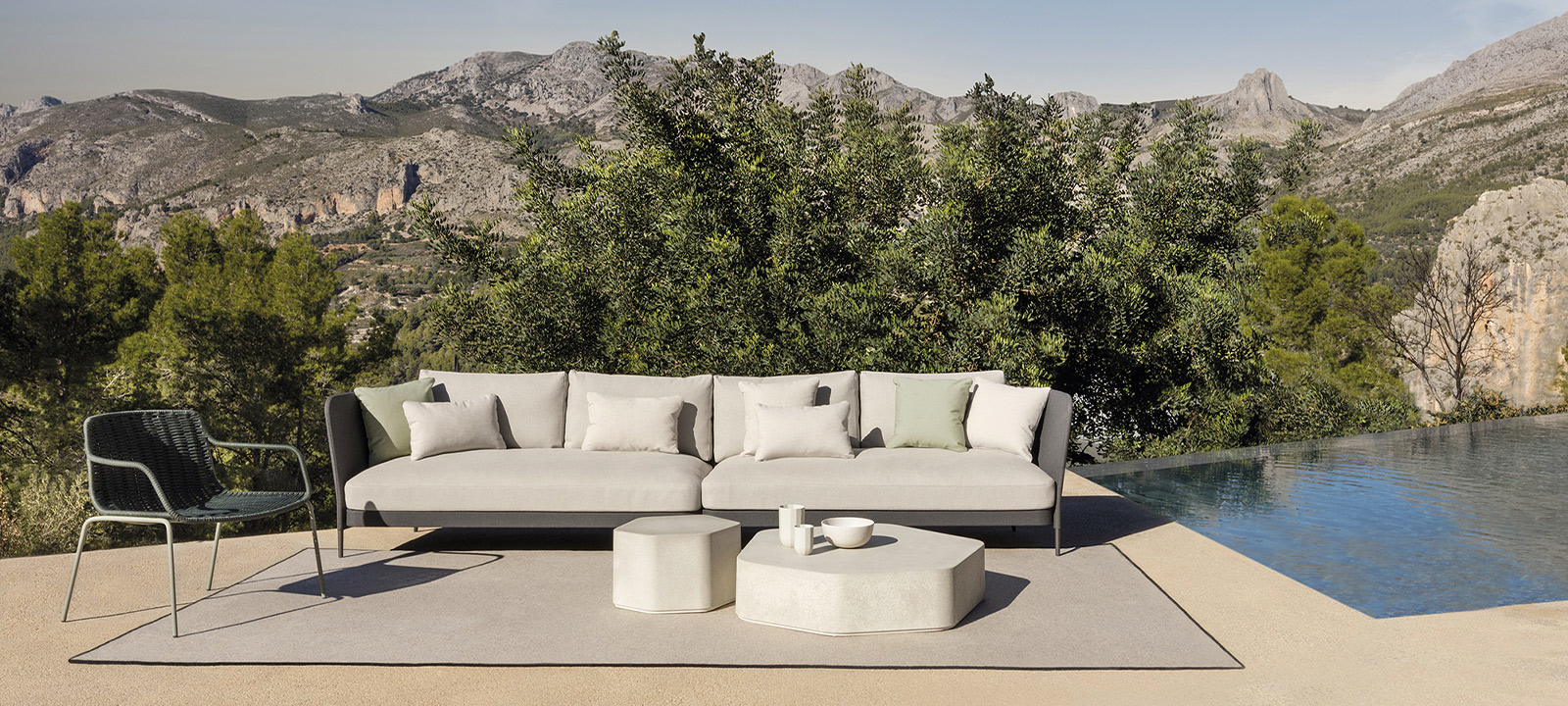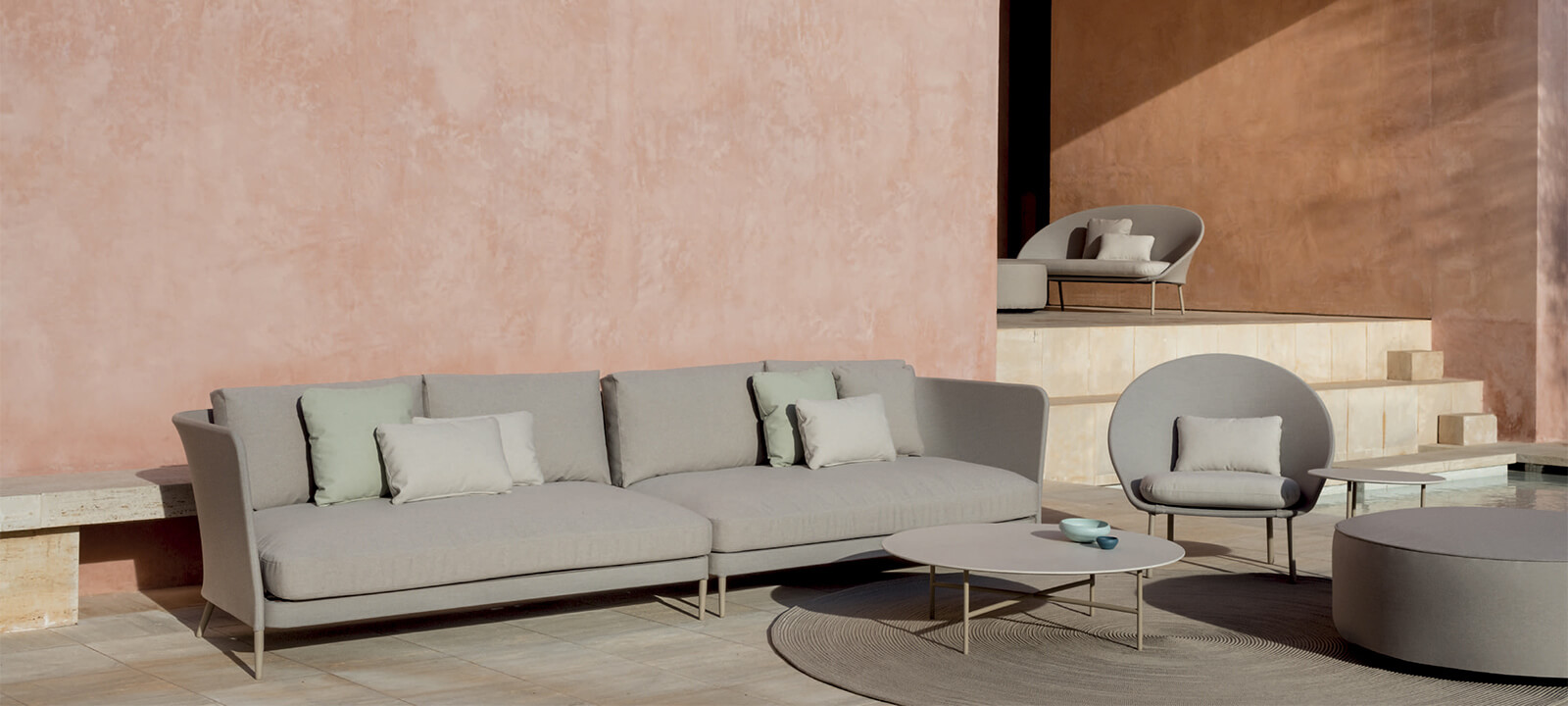 Que ce soit pour un jardin, une terrasse, un patio d’hôtel ou un espace lounge au bord de l’eau, le canapé KABÜ transforme l’espace en une invitation au confort et à l’élégance.