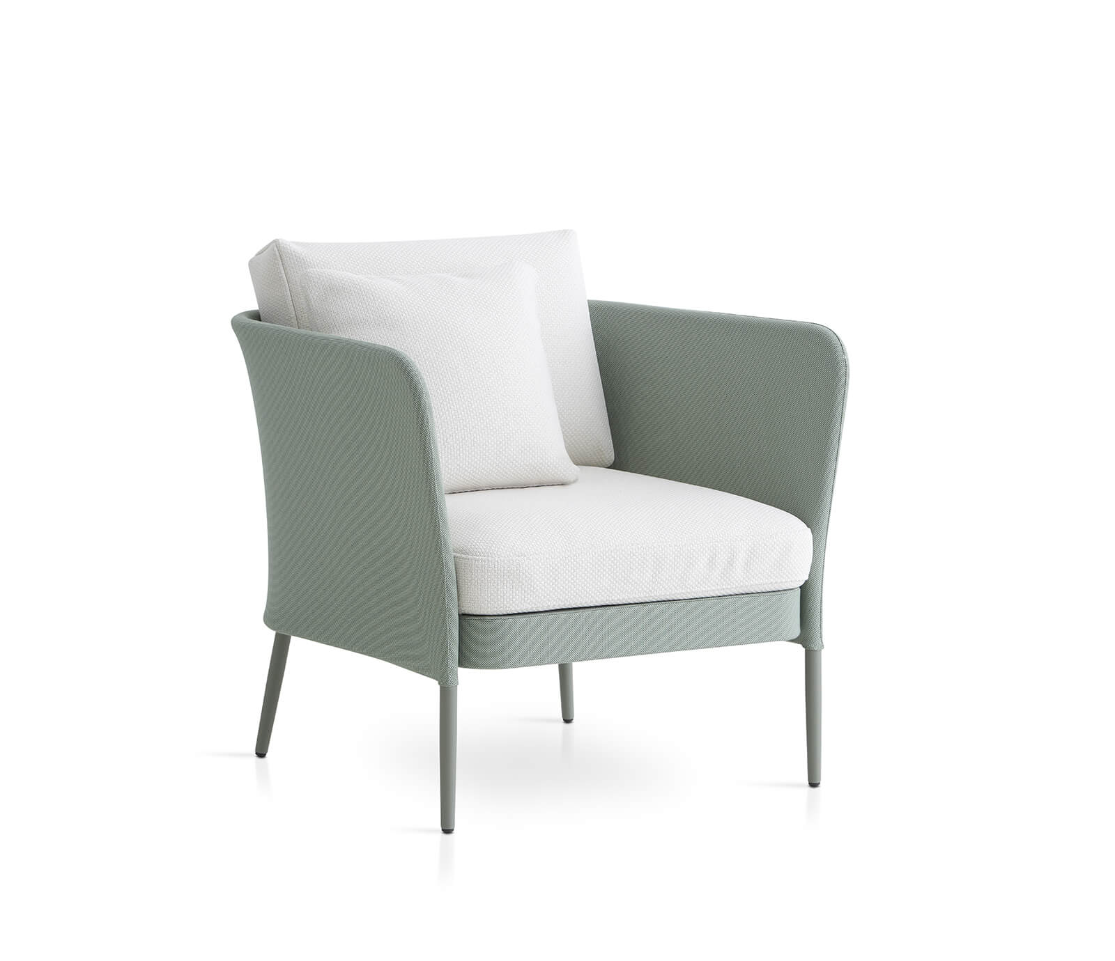 Le fauteuil KABÜ présente une structure en tube d’aluminium de haute résistance, conçus pour faire face aux intempéries extérieurs tout en garantissant légèreté et durabilité.