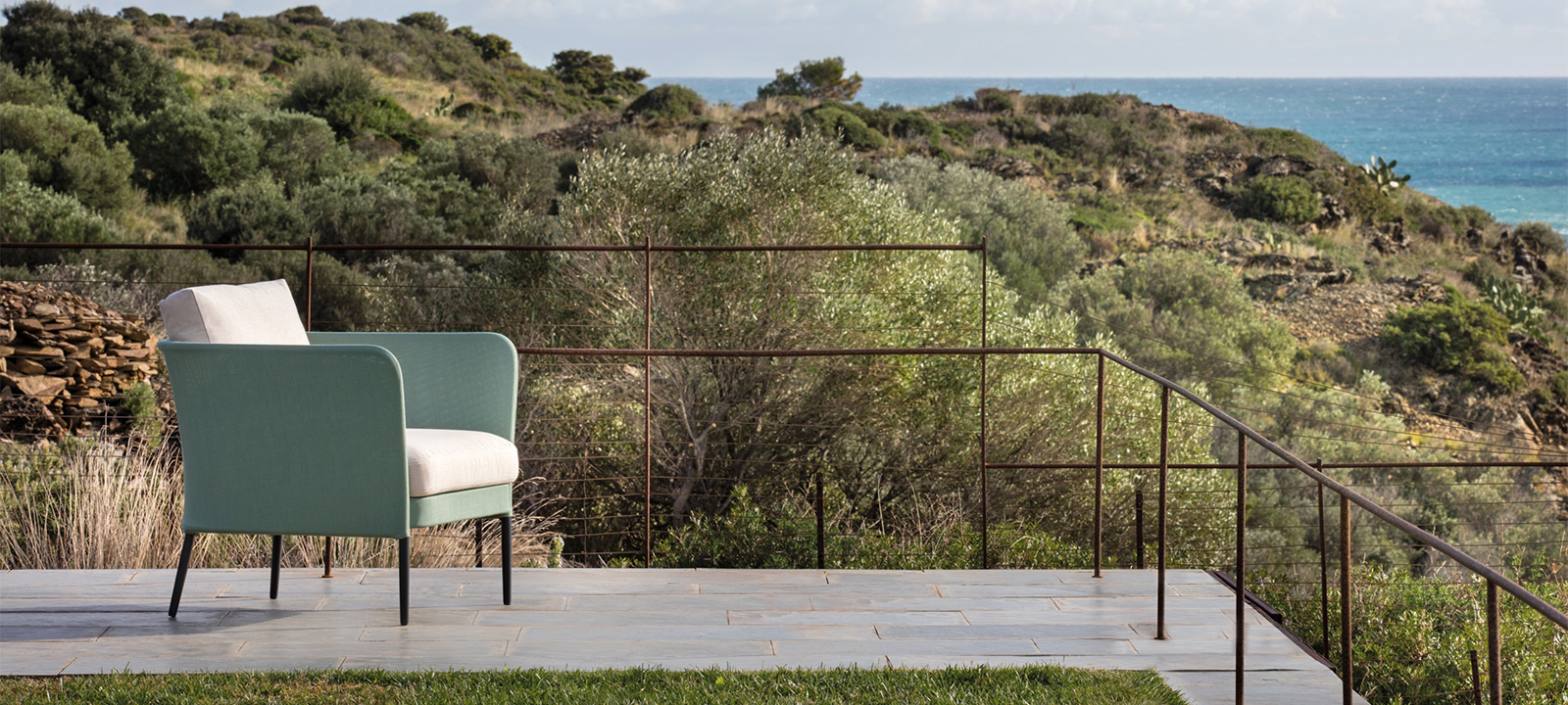 Expormim offre une vaste gamme de tissus et de finitions spécialement conçus pour une utilisation extérieure, permettant une personnalisation complète du fauteuil KABÜ.