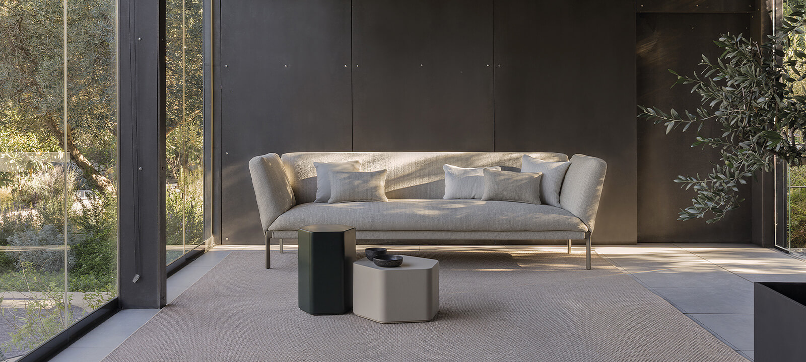 Le canapé extérieur LIVIT d’Expormim offre un large choix de personnalisation dans une large palette de finitions et de couleurs.